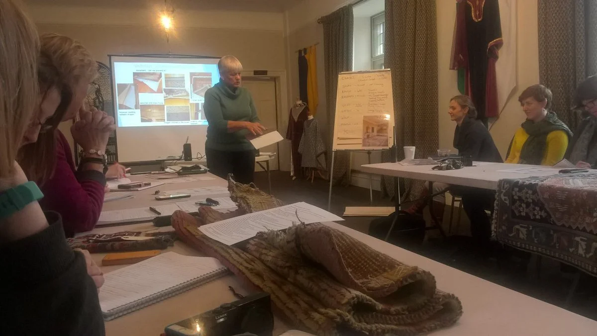 Training session for National Trust staff on woven carpet structures and the day to day care of carpets and rugs