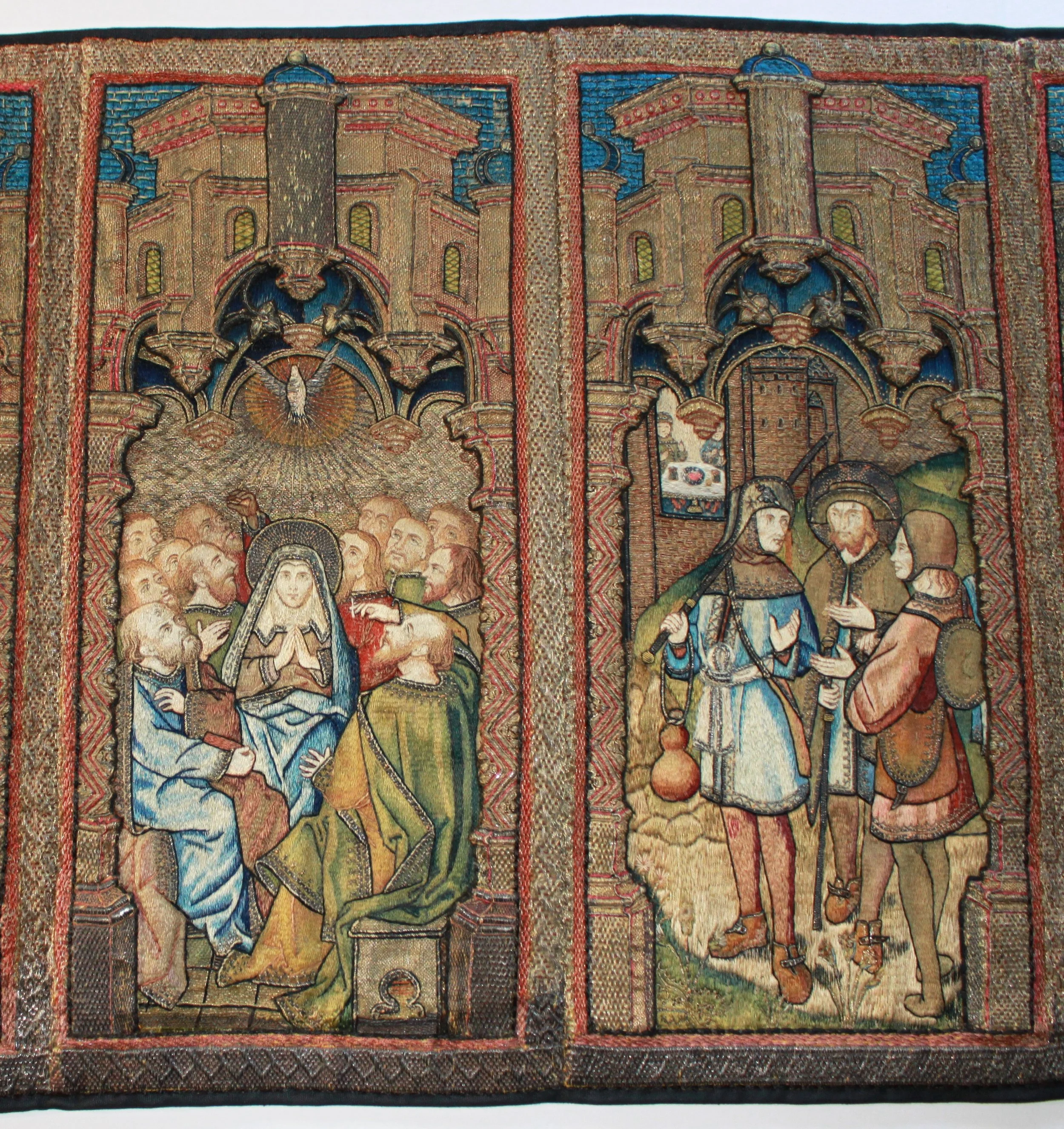 Detail of a 16th century embroidered ecclesiastical panel after treatment. Surface cleaning, removal of previous unsightly repairs and securing loose threads