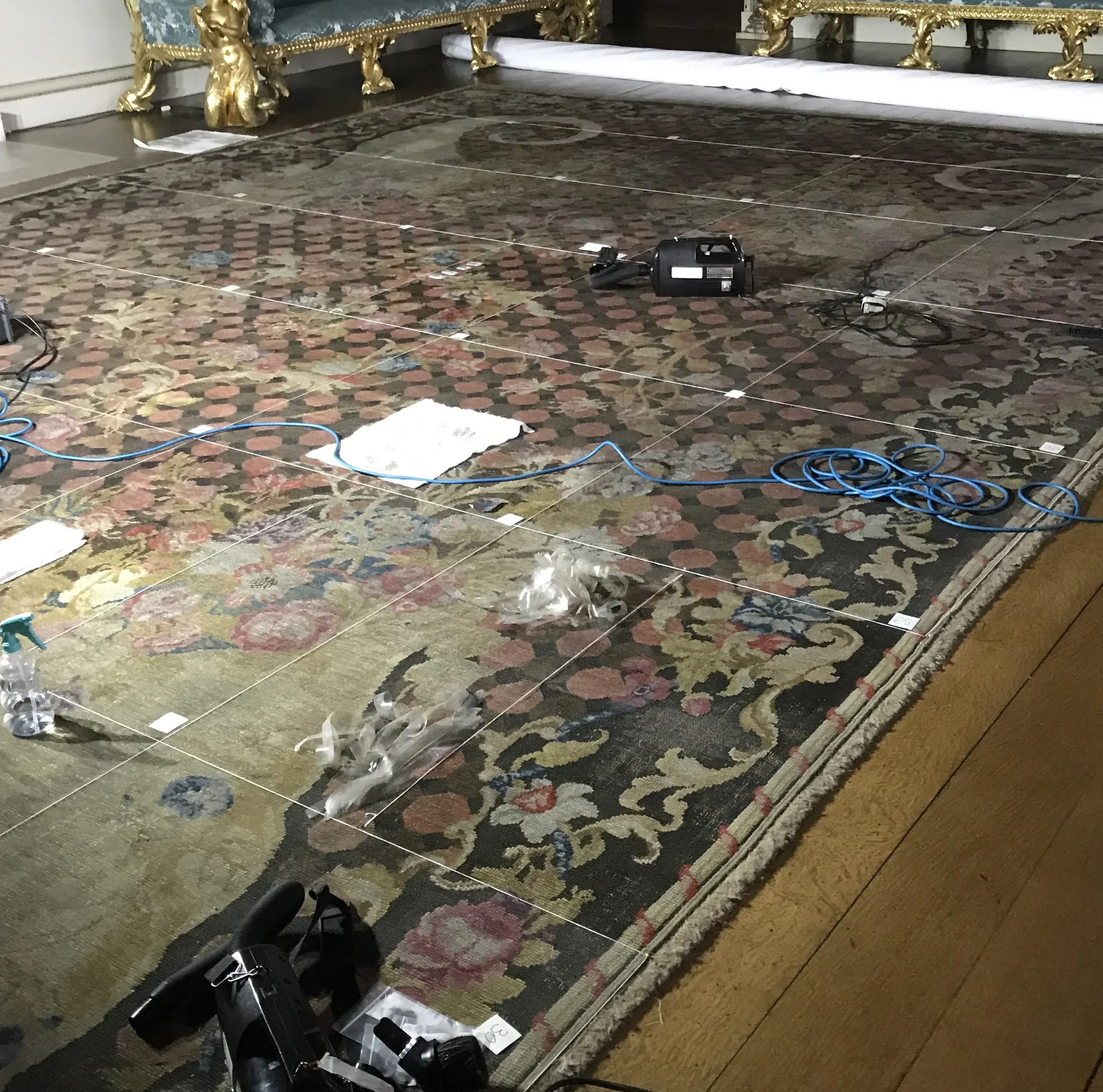 Condition survey and trial cleaning of the 18thc Drawing Room carpet at Kedleston Hall, Derbyshire